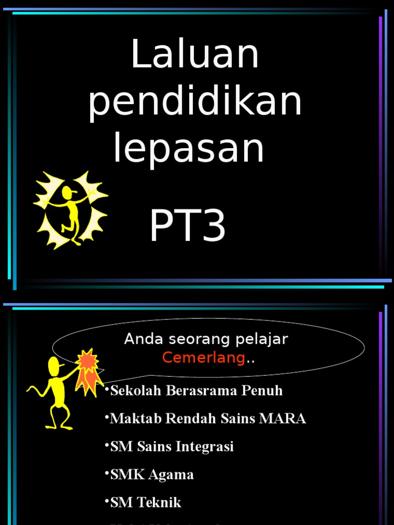 Ini adalah kerana saya terlibat dengan program intervensi tingkatan 3 dan 5 (calon pt3 dan spm ) ketika saya masih bertugas di smk lepar hilir. Kertas kerja program selepas peperiksaan pt3 2015 kertas kerja. Pbs 2.psikometrik 3.pjsk 4.pt3 ke kolej vokasional syarat kelayakan mrsm dan sbp kelayakan. Pt3 (pentaksiran tingkatan tiga) merupakan sebuah penilaian pencapaian akademik murid pada peringkat pendidikan menengah rendah iaitu dari tingkatan 1 hingga tingkatan 3. Kertas kerja program selepas pt3.