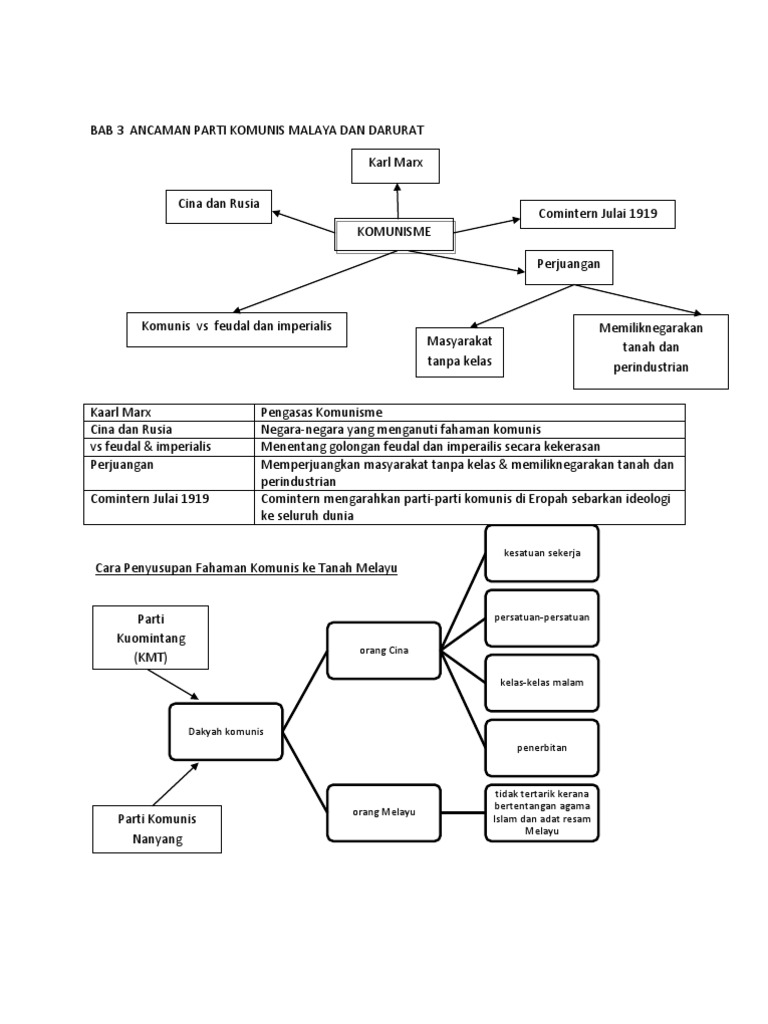 11430249 Sejarah Tingkatan 3 Bab 3 from image.slidesharecdn.com Matlamat utama perjuangan pkm ialah untuk menguasai tanah melayu dengan menjadikannya sebagai republik rakyat malaya. The party was the first malay political party formed after the japanese occupation of malaya. Percubaan pertama pkm untuk merampas kuasa politik negara ini melalui perjuangan bersenjatanya gagal kerana tidak mendapat sokongan rakyat terbanyak di. Berikutan daripada itu beberapa orang pemimpinnya telah ditangkap serta dipenjarakan. Latar belakang • ideologi komunis ini mula disebarkan di tanah melayu pada 1930an. Sasaran utama pkm pada kali ini ialah anggota keselamatan dan pegawai kanan keselamatan yang mempunyai hubungan secara langsung dalam melakukan penentangan terhadap pergerakan mereka. • matlamat komunis di tanah melayu ialah untuk menubuhkan sebuah negara. Justeru, mereka berasa bahawa matlamat perjuangan mereka hanya dapat dicapai dengan melancarkan perjuangan bersenjata seperti yang dianjurkan oleh pengerusi parti komunis china, mao zedong.